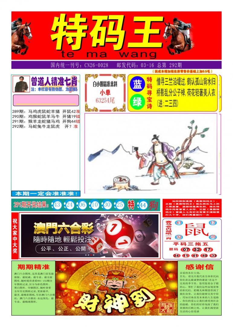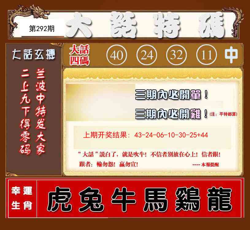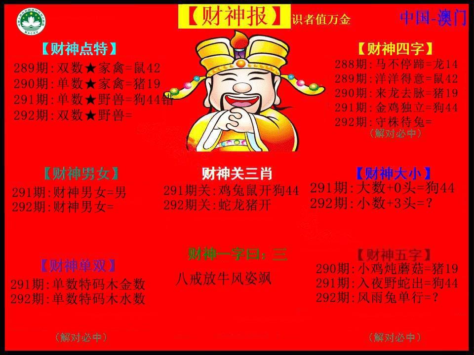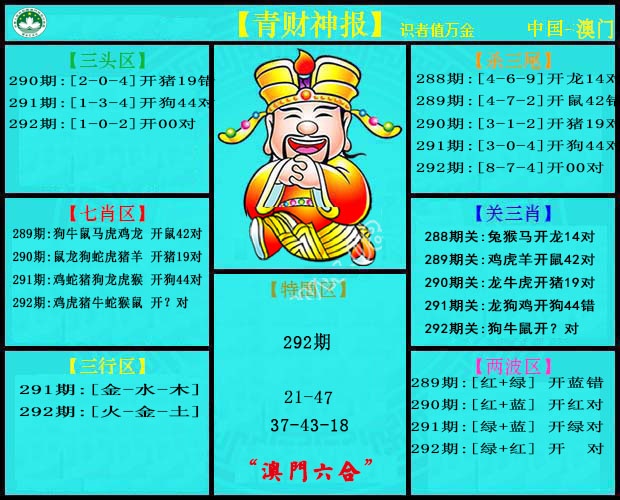 292期:【财神殿】→【主攻一码三中三】█彩民狂赚百万