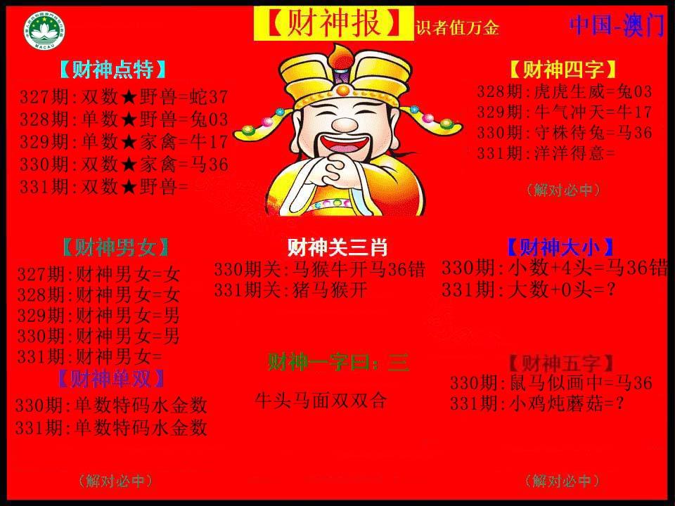 热门帖 331期:【财神中意】 🀄【家野中特】 圆梦六合 财神中意