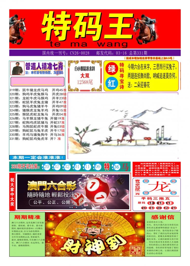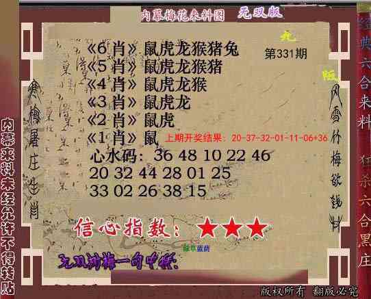 热门帖 331期:【神算正版】 🀄【一尾二码】 更新中奖 神算正版
