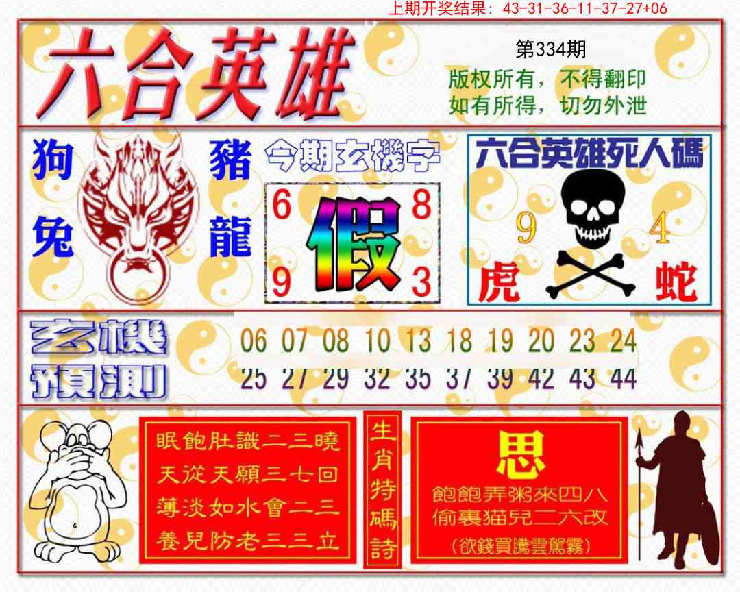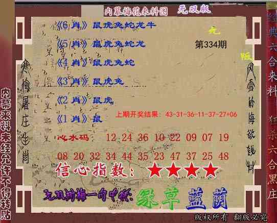 出售帖 334期:【六合赌霸】 🀄【一码中特】 高手研究 六合赌霸