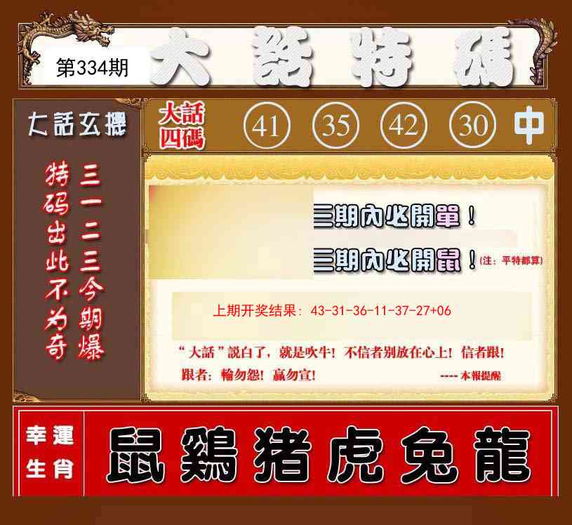 热门帖 334期:【猛料直击】 🀄【④码中特】 抓住机会 猛料直击