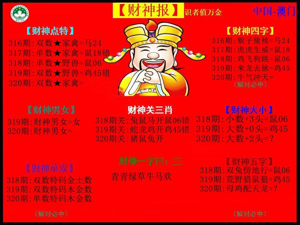 318期:【财神殿】→【主攻一码三中三】█彩民狂赚百万