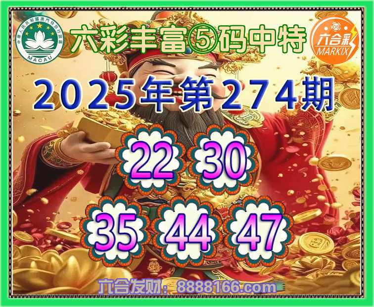 274期: 🎖️『六彩丰富』 🎖️⑤码中特🎖️【22.30.35.44.47】开:44准