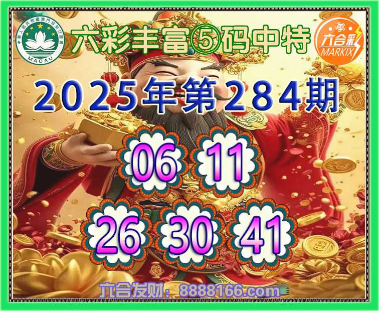 284期: 🎖️『六彩丰富』 🎖️⑤码中特🎖️【06.11.26.30.41】开:41准