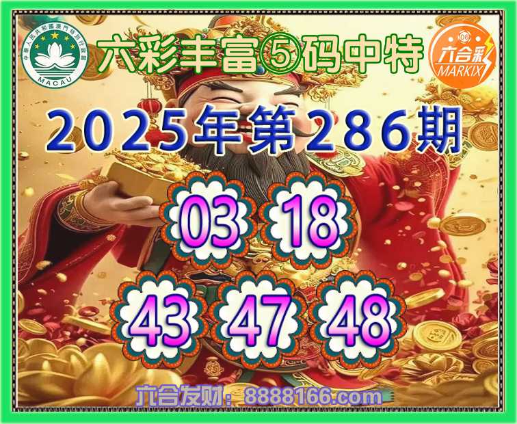 286期: 🎖️『六彩丰富』 🎖️⑤码中特🎖️【03.18.43.47.48】开:03准