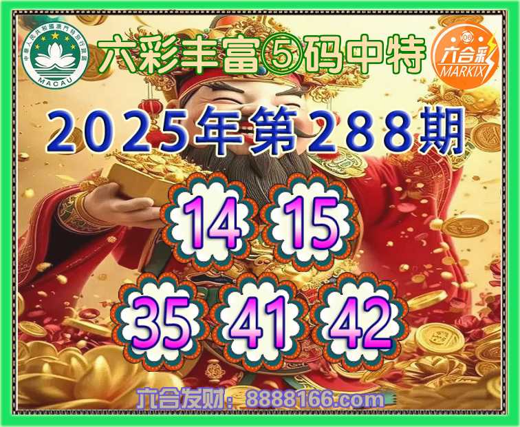 288期: 🎖️『六彩丰富』 🎖️⑤码中特🎖️【14.15.35.41.42】开:14准