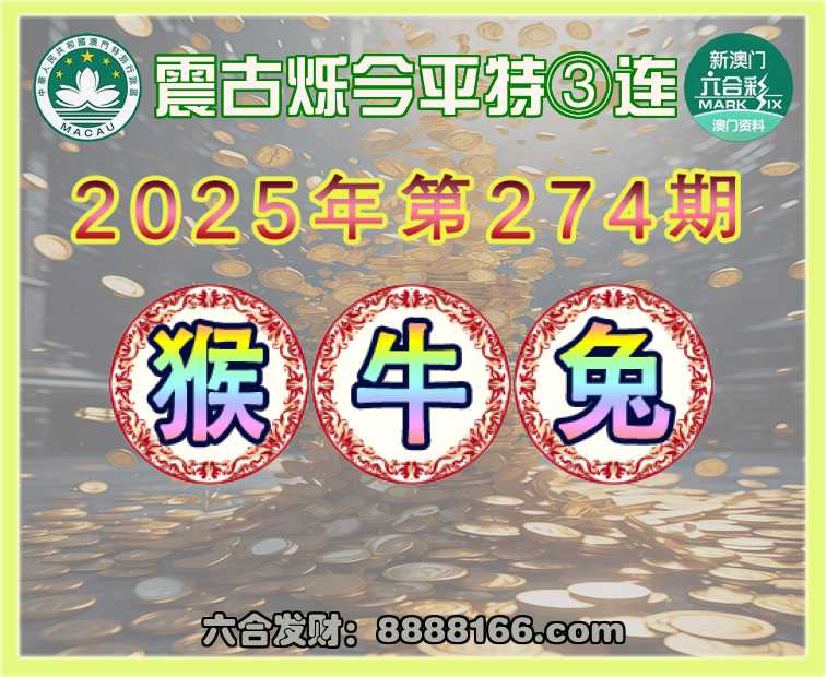 274期:〖震古烁今〗 ♣️平特③连 ♣️【猴牛兔】开:猴22,牛41,兔39准