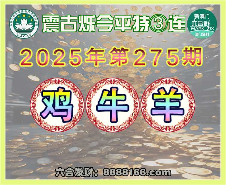 275期:〖震古烁今〗 ♣️平特③连 ♣️【鸡牛羊】开:鸡45,牛05,羊47准