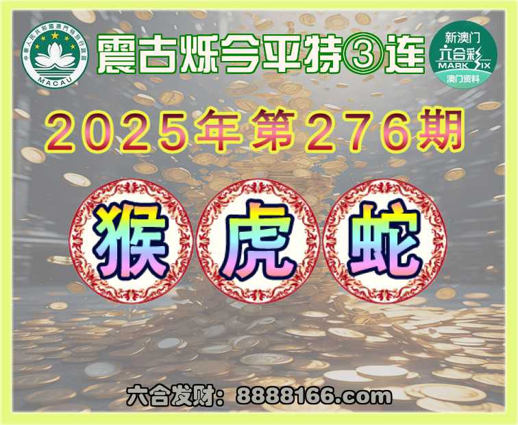 276期:〖震古烁今〗 ♣️平特③连 ♣️【猴虎蛇】开:猴22,虎16,蛇13准