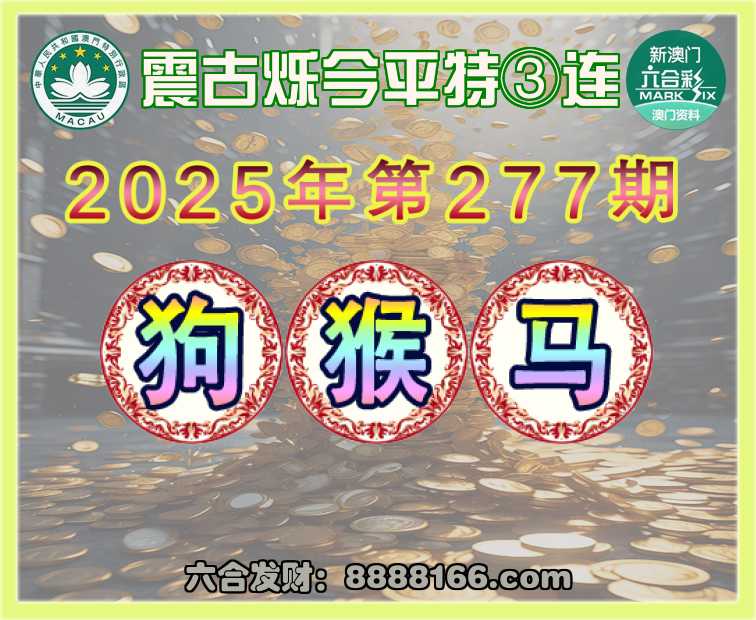 277期:〖震古烁今〗 ♣️平特③连 ♣️【狗猴马】开:00错