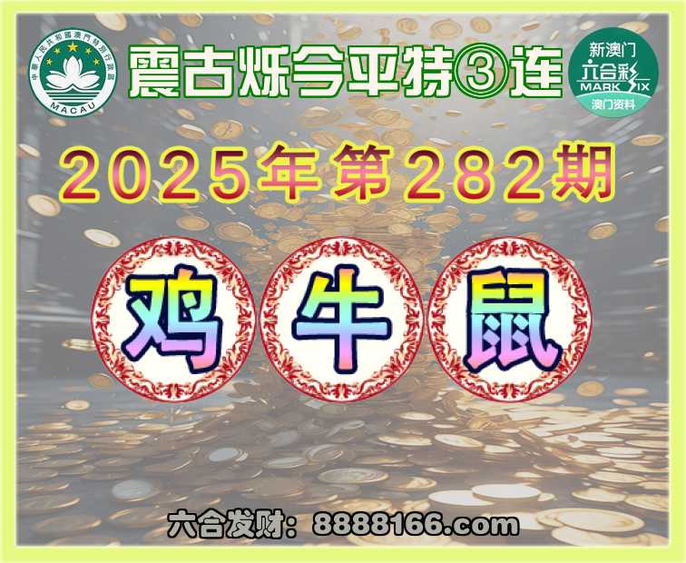 282期:〖震古烁今〗 ♣️平特③连 ♣️【鸡牛鼠】开:鸡33,牛41,鼠30准
