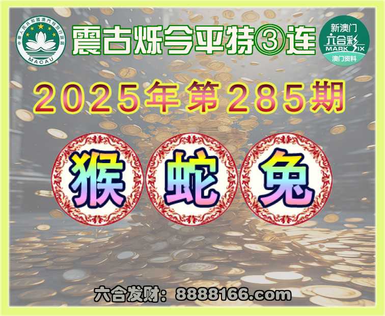 285期:〖震古烁今〗 ♣️平特③连 ♣️【猴蛇兔】开:猴46,蛇25,兔15准