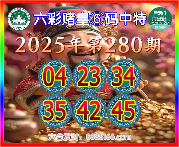 280期:《六彩赌皇》 🀄⑥码中特🀄【04.23.34.35.42.45】开:42准