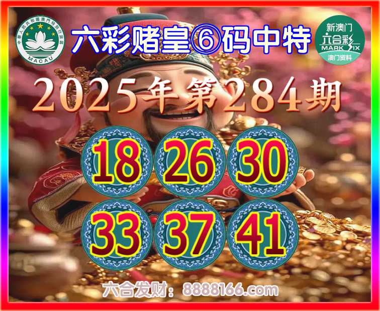 284期:《六彩赌皇》 🀄⑥码中特🀄【18.26.30.33.37.41】开:41准