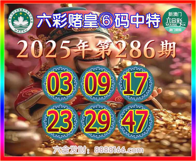 286期:《六彩赌皇》 🀄⑥码中特🀄【03.09.17.23.29.47】开:03准