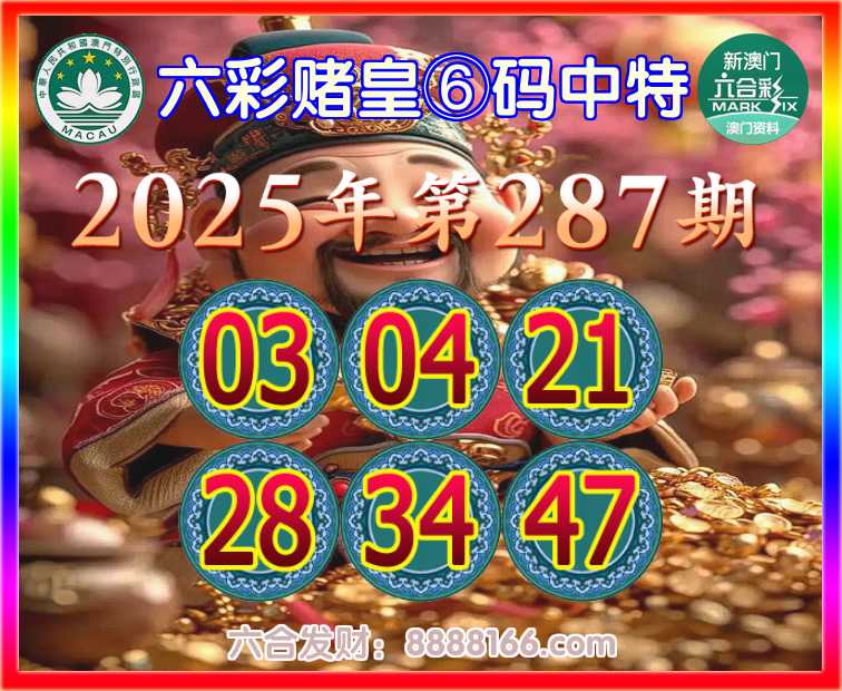 287期:《六彩赌皇》 🀄⑥码中特🀄【03.04.21.28.34.47】开:34准