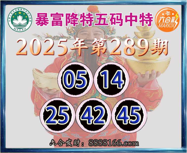 289期:【暴富降特】 ☺️五码中特☺️【05.14.25.42.45】开:42准