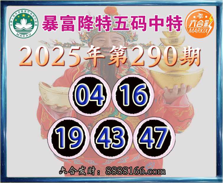 290期:【暴富降特】 ☺️五码中特☺️【04.16.19.43.47】开:19准