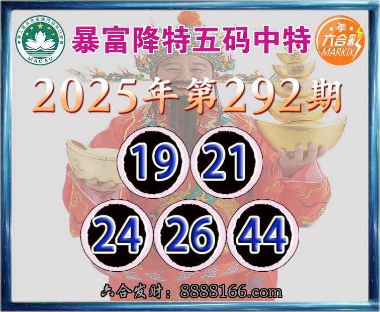 292期:【暴富降特】 ☺️五码中特☺️【19.21.24.26.44】开:02错