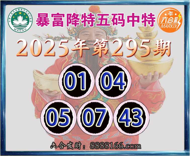 295期:【暴富降特】 ☺️五码中特☺️【01.04.05.07.43】开:05准