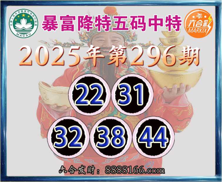 296期:【暴富降特】 ☺️五码中特☺️【22.31.32.38.44】开:22准