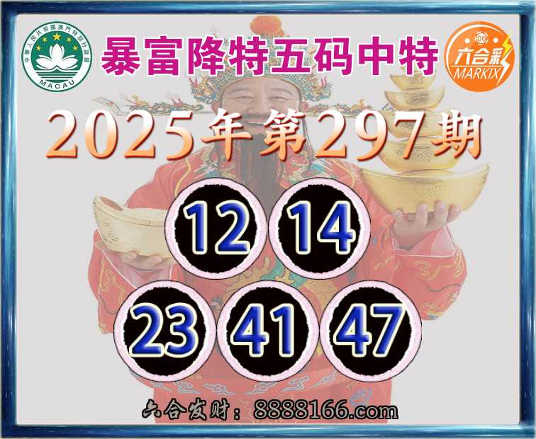 297期:【暴富降特】 ☺️五码中特☺️【12.14.23.41.47】开:44错
