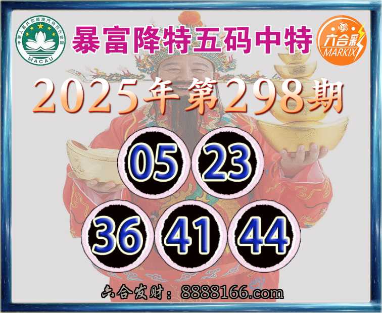 298期:【暴富降特】 ☺️五码中特☺️【05.23.36.41.44】开:23准