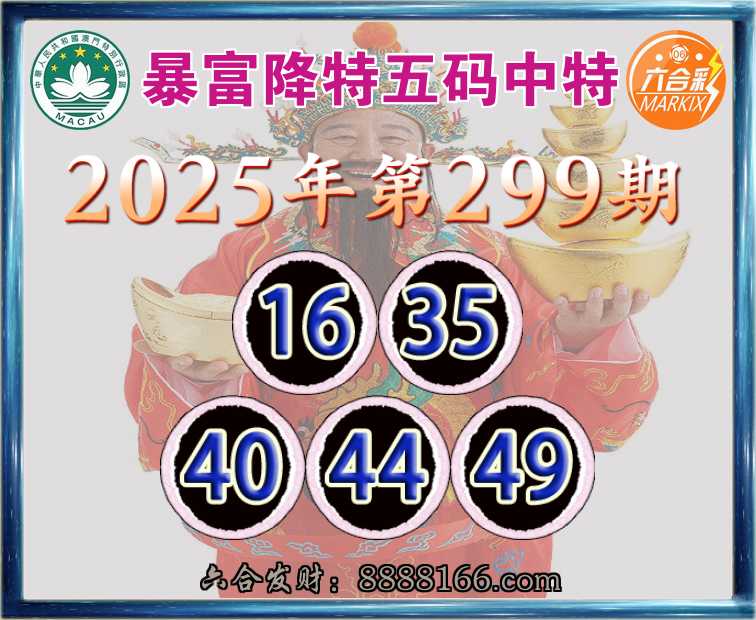 299期:【暴富降特】 ☺️五码中特☺️【16.35.40.44.49】开:49准