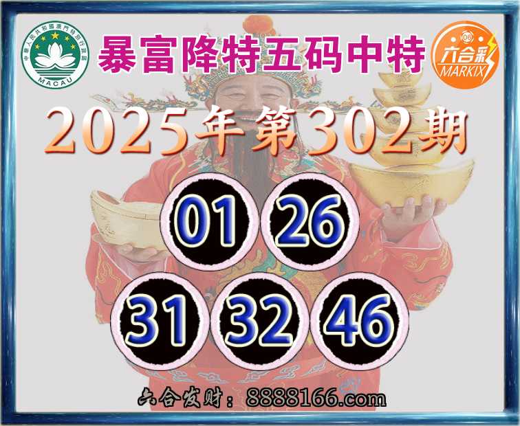 302期:【暴富降特】 ☺️五码中特☺️【01.26.31.32.46】开:00准