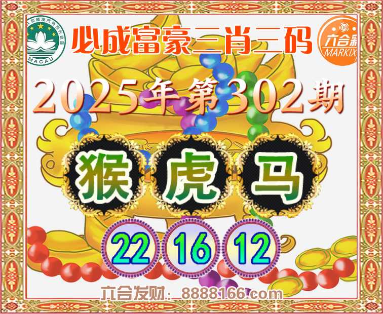 302期:〖必成富豪〗 🍀三肖三码🍀【猴虎马】【22.16.12】开:猴22准