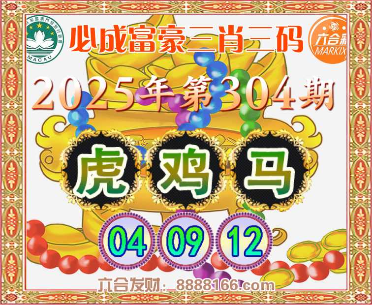304期:〖必成富豪〗 🍀三肖三码🍀【虎鸡马】【04.09.12】开:马48准