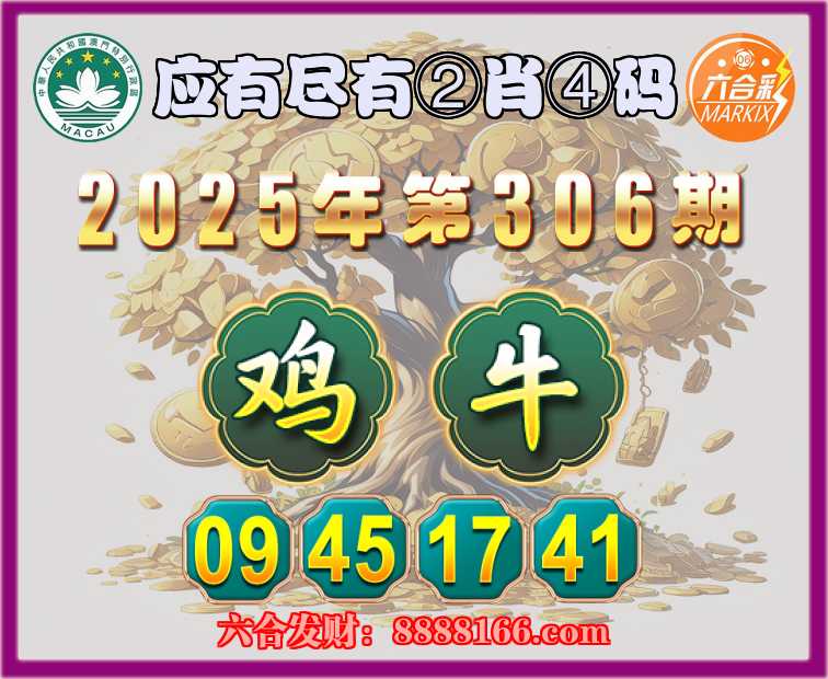 306期:《应有尽有》 🧩②肖④码🧩【鸡牛】【09.45.17.41】开:牛17准