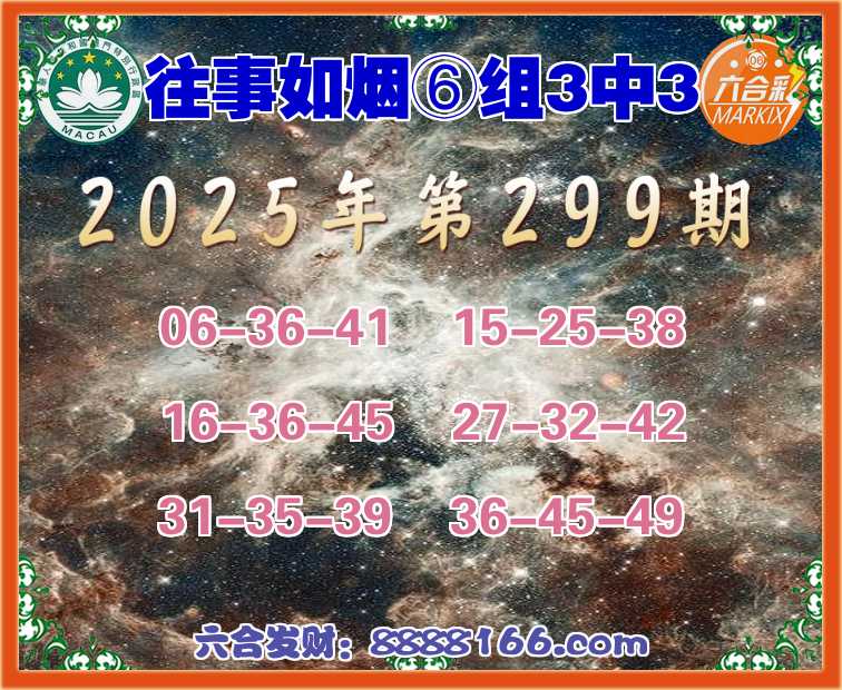 299期:【往事如烟】 🥫⑥组3中3🥫