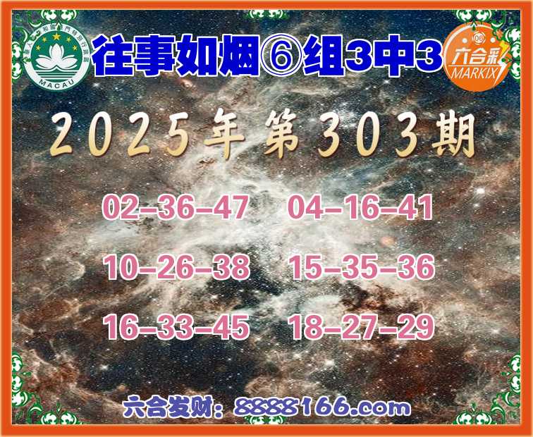 303期:【往事如烟】 🥫⑥组3中3🥫