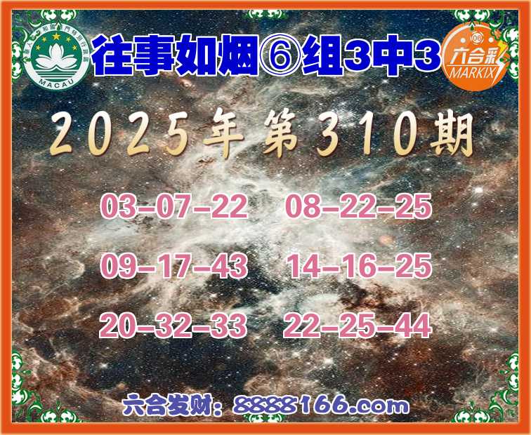 310期:【往事如烟】 🥫⑥组3中3🥫