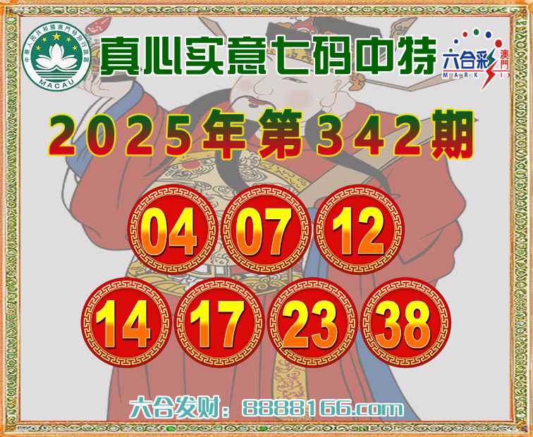 342期:《真心实意》 ♠️七码中特♠️【04.07.12.14.17.23.38】开:04准