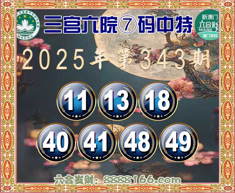 343期:【三宫六院】 🥩⑦码中特🥩【11.13.18.40.41.48.49】开:38错