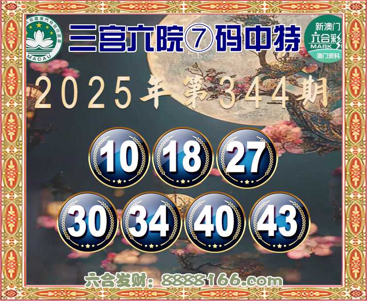 344期:【三宫六院】 🥩⑦码中特🥩【10.18.27.30.34.40.43】开:27准