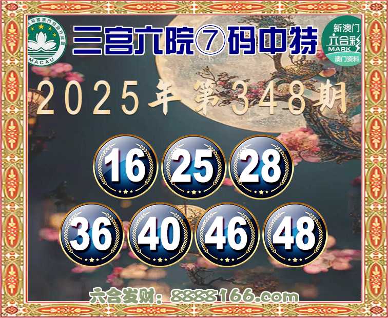 348期:【三宫六院】 🥩⑦码中特🥩【16.25.28.36.40.46.48】开:16准