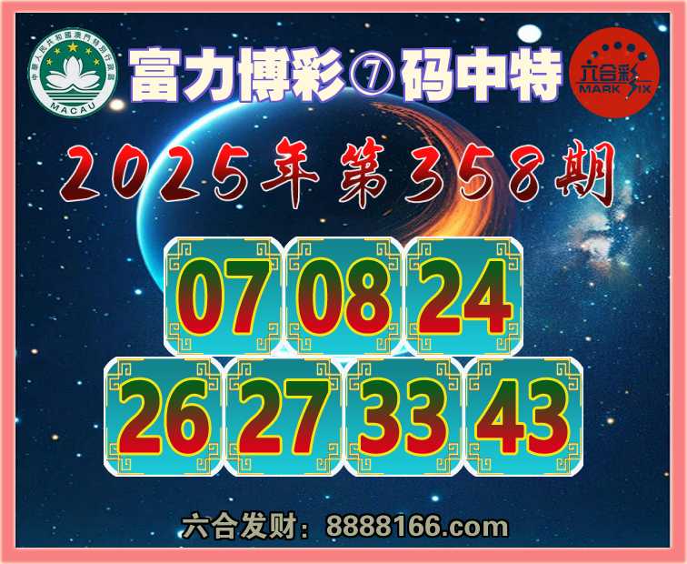 358期:『富力博彩』 😳⑦码中特😳【07.08.24.26.27.33.43】开:07准