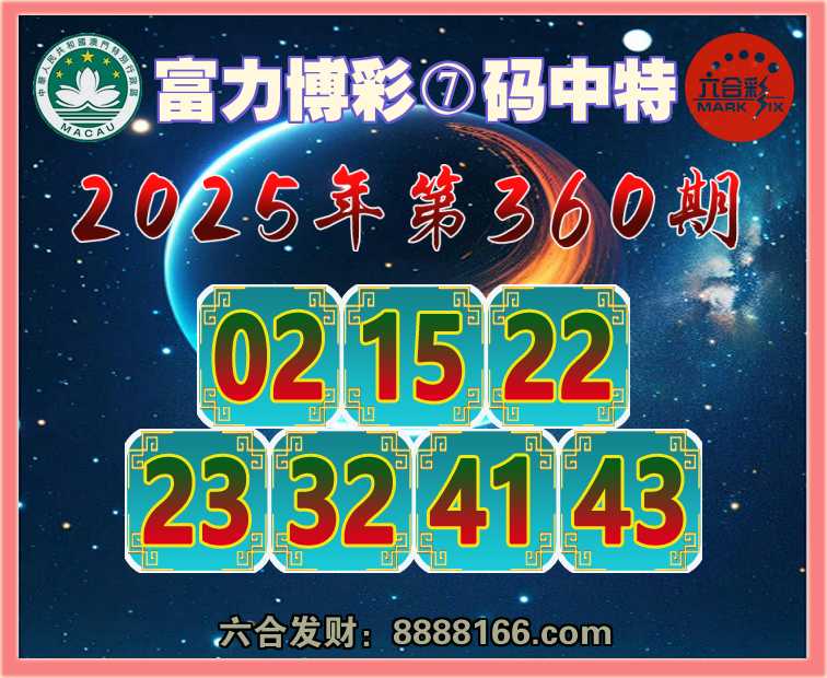 360期:『富力博彩』 😳⑦码中特😳【02.15.22.23.32.41.43】开:41准