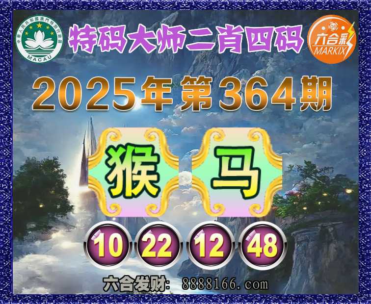 364期: 特码大师 🧏♀️二肖四码🧏♀️【猴马】【10.22.12.48】开:马12准