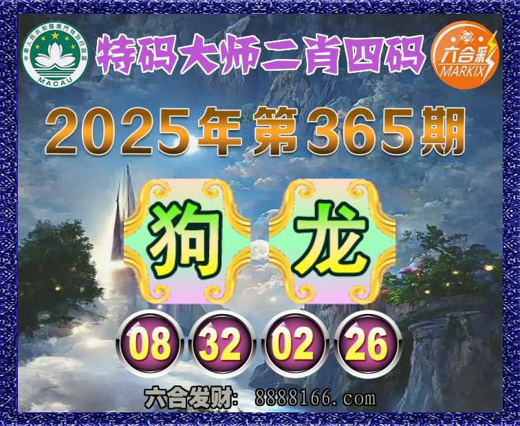 365期: 特码大师 🧏♀️二肖四码🧏♀️【狗龙】【08.32.02.26】开:龙26准