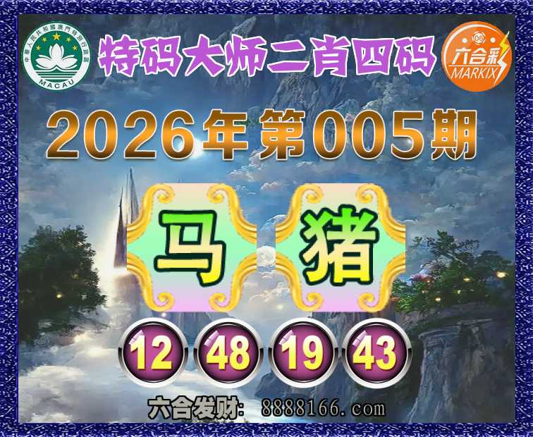 005期: 特码大师 🧏♀️二肖四码🧏♀️【马猪】【12.48.19.43】开:猪43准