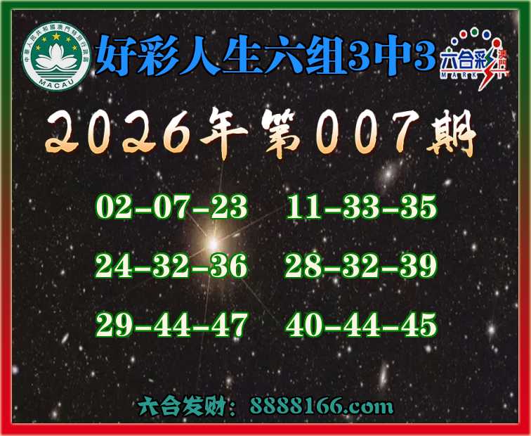 007期:『好彩人生』 😳六组3中3😳