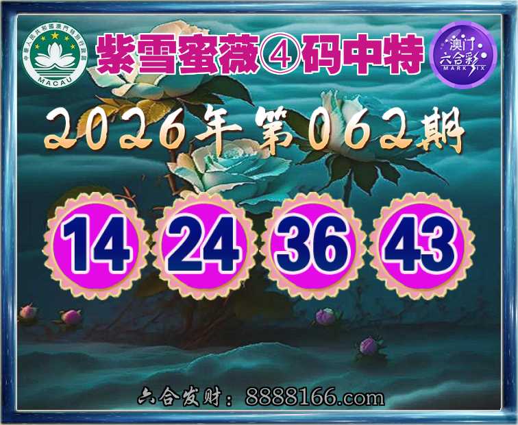 062期:【紫雪蜜薇】 🧧④码中特🧧【14.24.36.43】开:24