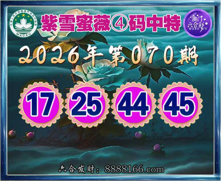 070期:【紫雪蜜薇】 🧧④码中特🧧【17.25.44.45】开:25