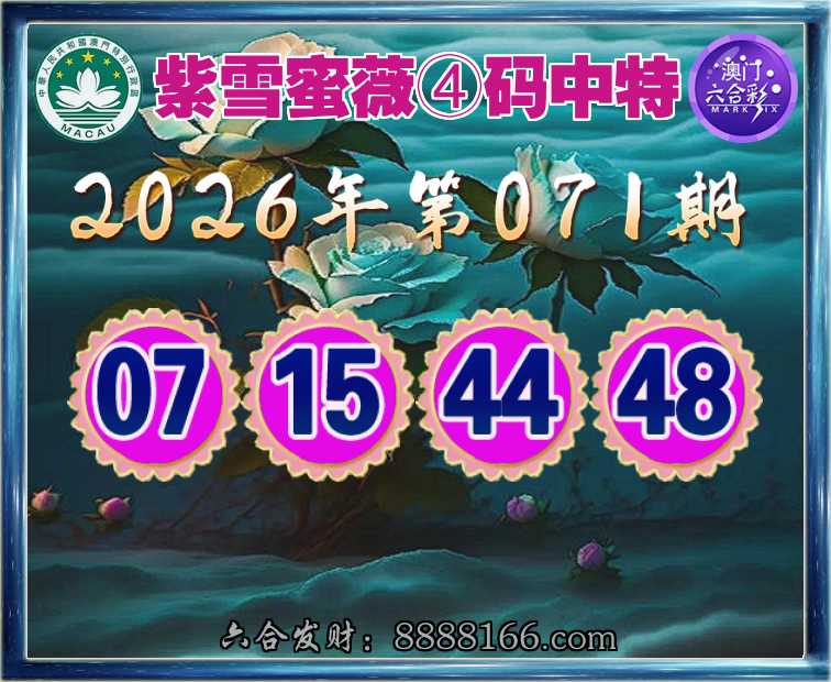 071期:【紫雪蜜薇】 🧧④码中特🧧【07.15.44.48】开:48