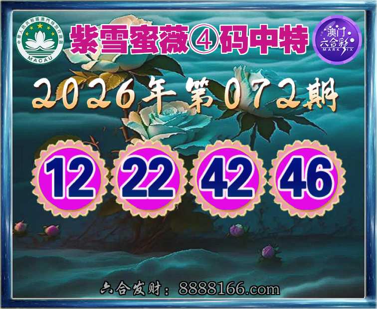072期:【紫雪蜜薇】 🧧④码中特🧧【12.22.42.46】开:46