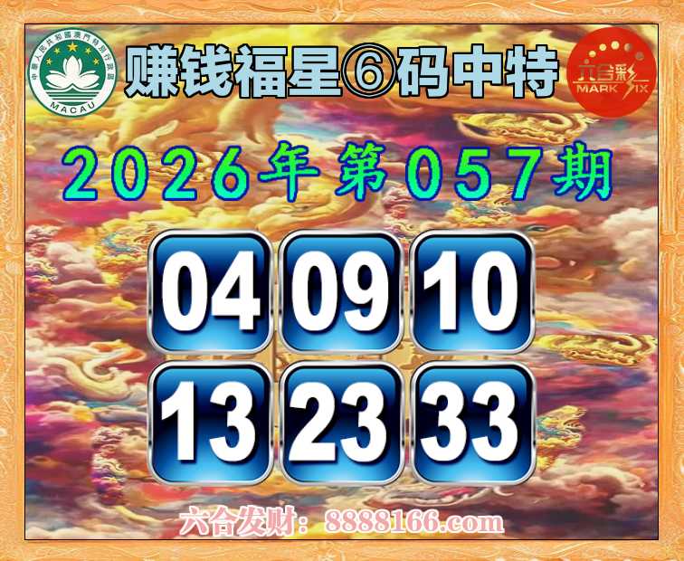 057期:【赚钱福星】 🚵♀️⑥码中特🚵♀️【04.09.10.13.23.33】开:23准
